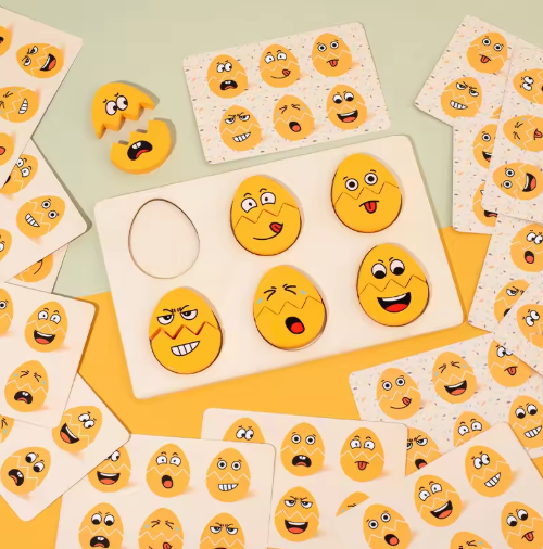 تعبيرات الوجه البيض الأطفال ألعاب خشبية بيض عيد الفصح لعبة مونتيسوري العاطفة الألغاز التعليم المبكر لعبة مونتيسوري