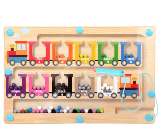متاهة الألوان والأرقام المغناطيسية ألعاب مونتيسوري كرات مغناطيسية خشبية ألغاز تعلم لعبة حسية تعليمية للأطفال الصغار والأطفال