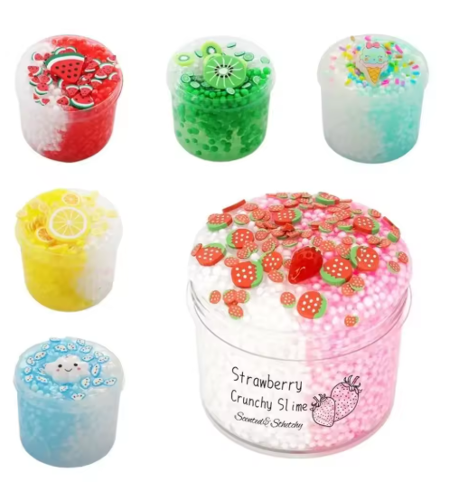 مجموعة كرة إسفنجية كريستالية ناعمة سعة 70 مل لامعة وشفافة على شكل فراولة كيوي لتخفيف التوتر