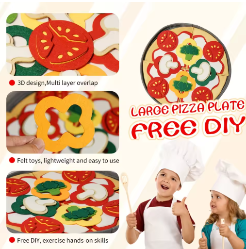 مجموعة لعب بيتزا اللباد مكونة من 41 قطعة/مجموعة للأطفال - مجموعة ألعاب المطبخ التفاعلية للبنين والبنات، هدية عيد الميلاد للأعمار من 3 إلى 6 سنوات