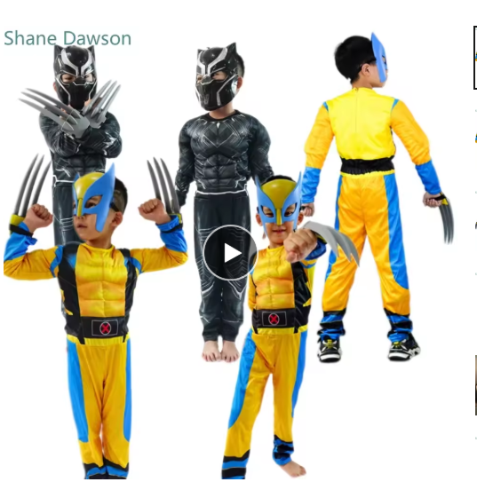 ولفيرين تأثيري حلي أطفال بنين خارقة النمر الأسود مخالب الفاخرة قناع بذلة هالوين ارتداءها العضلات ازياء البدلة